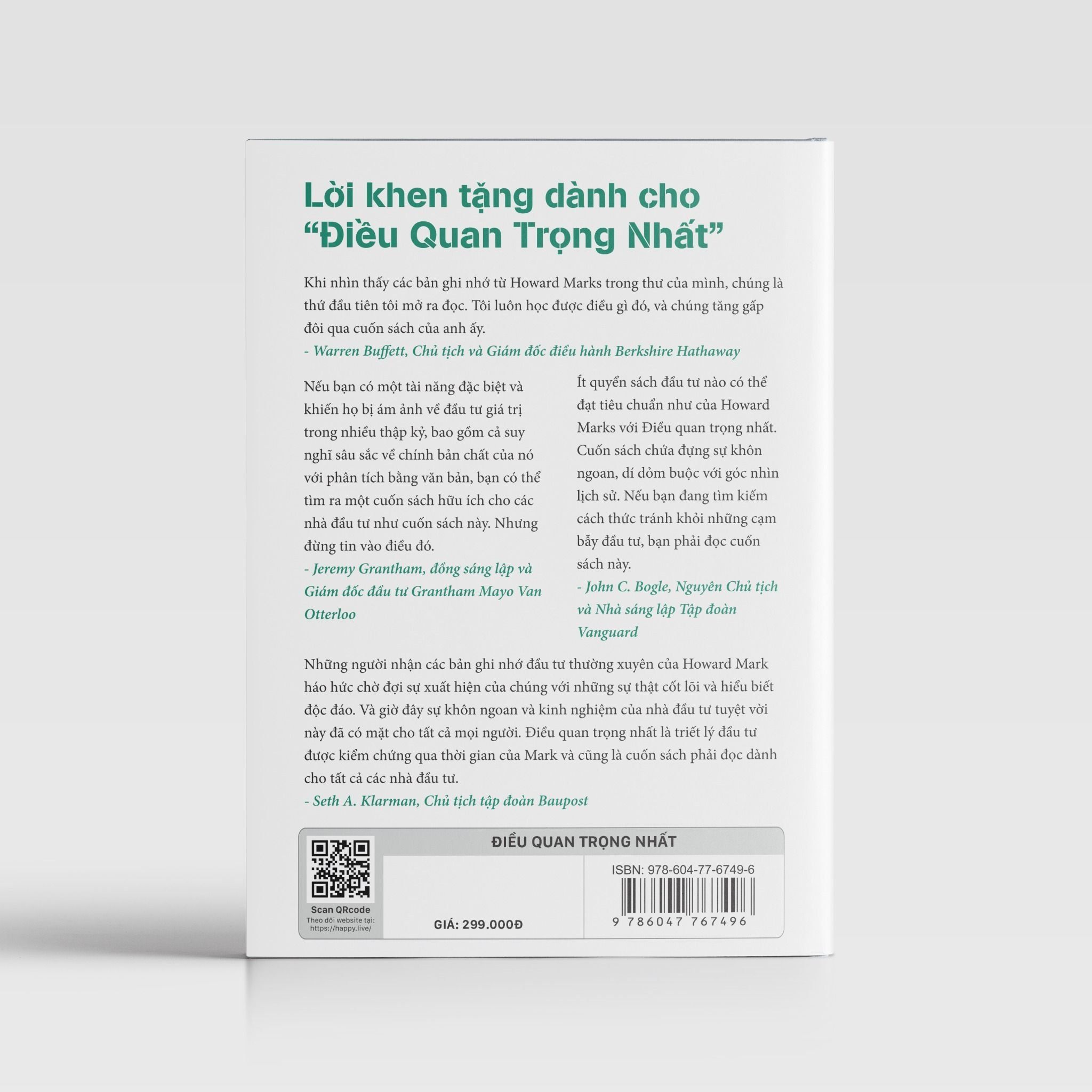 “Ít quyển sách đầu tư nào có thể đạt tiêu chuẩn như của Howard Marks với Điều quan trọng nhất. Cuốn sách Điều Quan Trọng Nhất chứa đựng sự khôn ngoan, dí dỏm buộc với góc nhìn lịch sử. Nếu bạn đang tìm kiếm cách thức tránh khỏi những cạm bẫy đầu tư, bạn phải đọc cuốn sách này.”